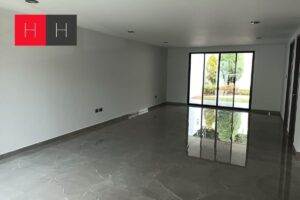 Planta Baja: Cochera para 2 autos, estudio, baño de visitas, sala, comedor, cocina integral equipada, área de lavado, cuarto de servicio con baño y amplio jardín con terraza.